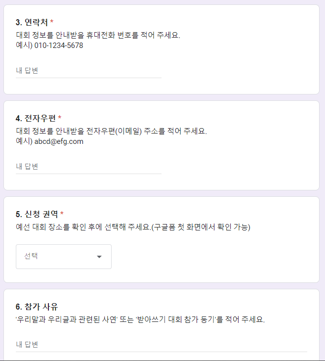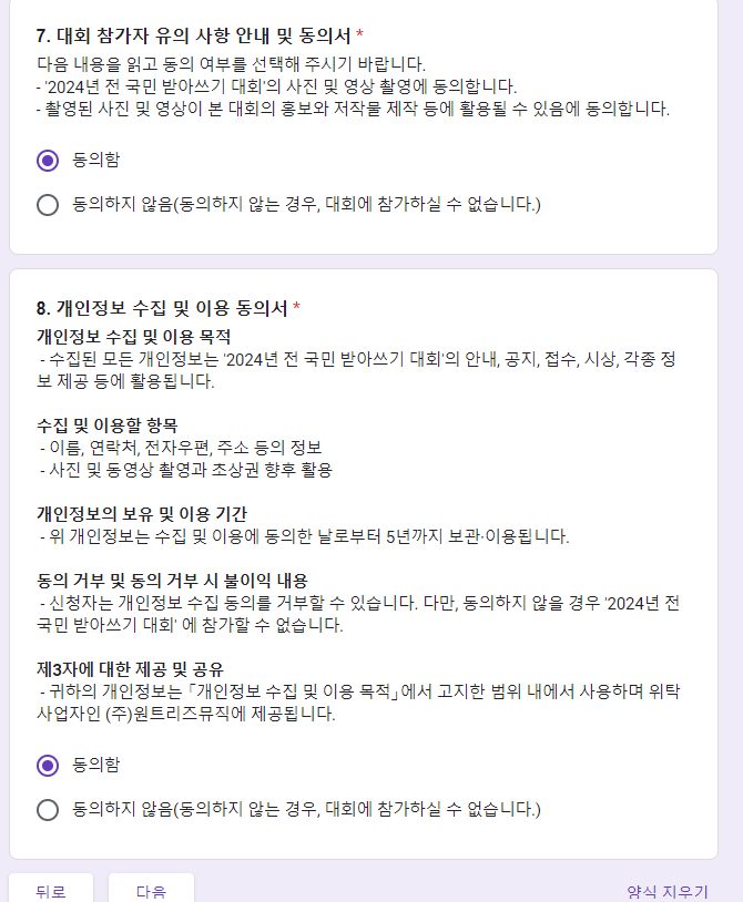 - 받아쓰기 대회 참가 동기(사유) 작성