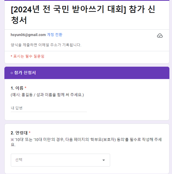 2. 구글폼 신청양식을 작성 후 제출하면 됩니다.