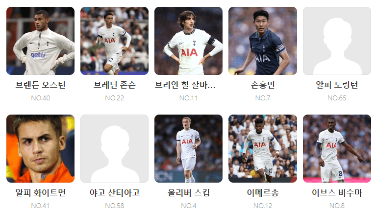 - 공격수 : 스칼렛, 존슨, 손흥민, 돈리, 베르너, 히샬리송
